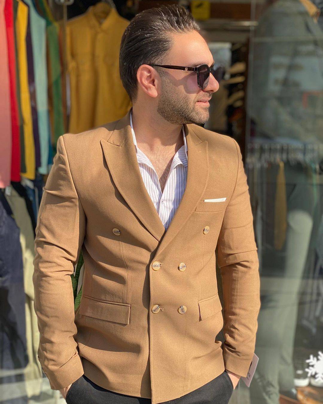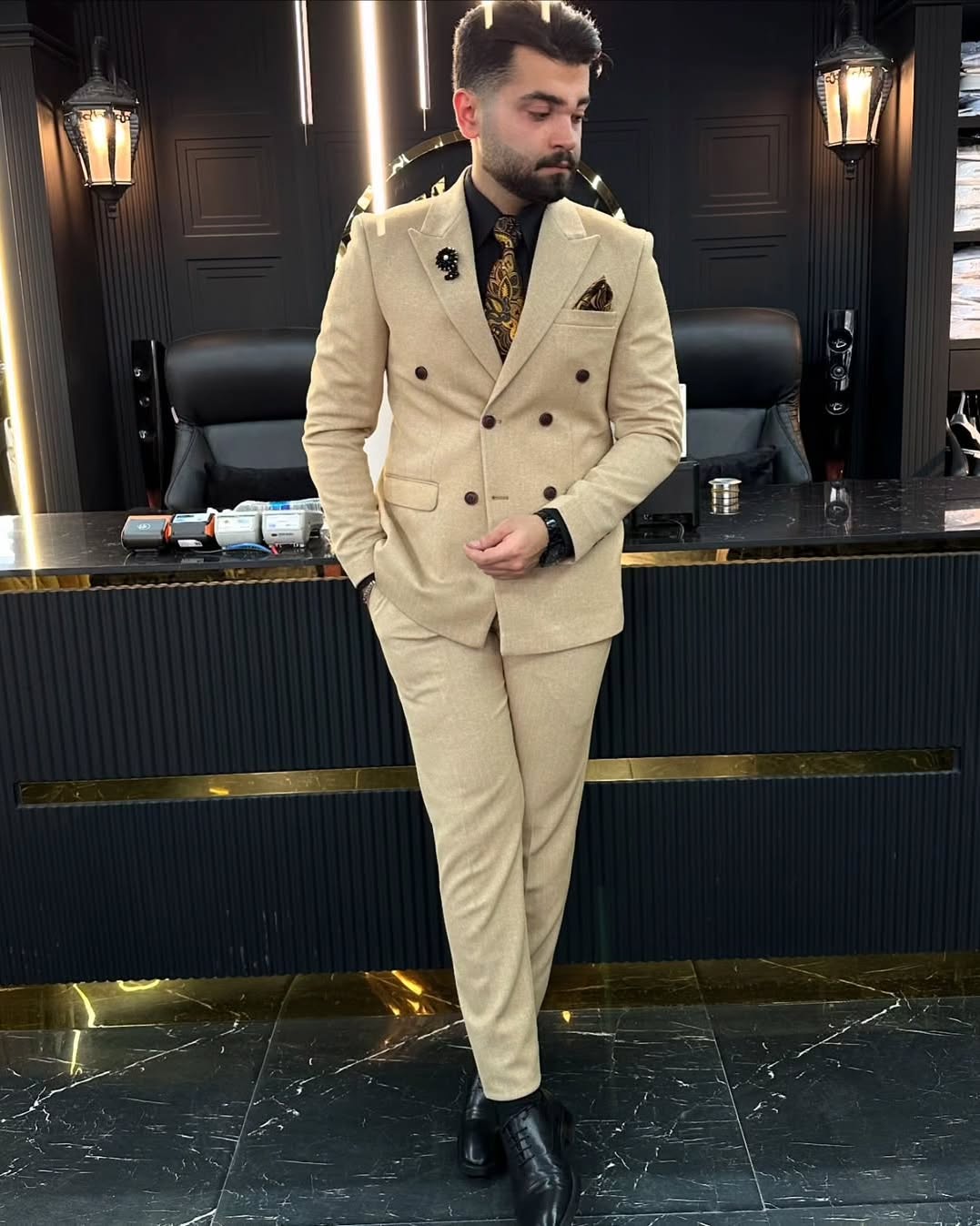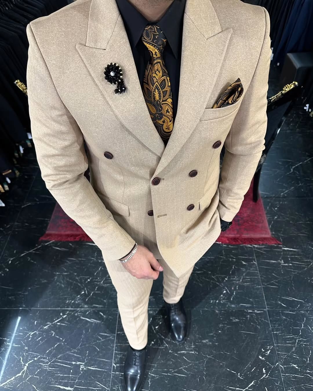 کت و شلوار دبل برست کرم