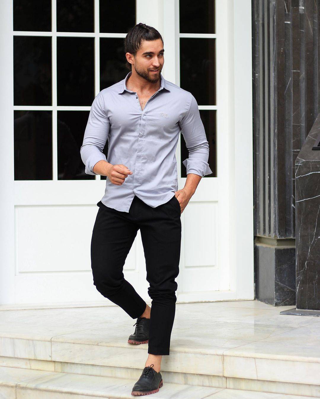 پیراهن طوسی دوشین قاپک مخفی